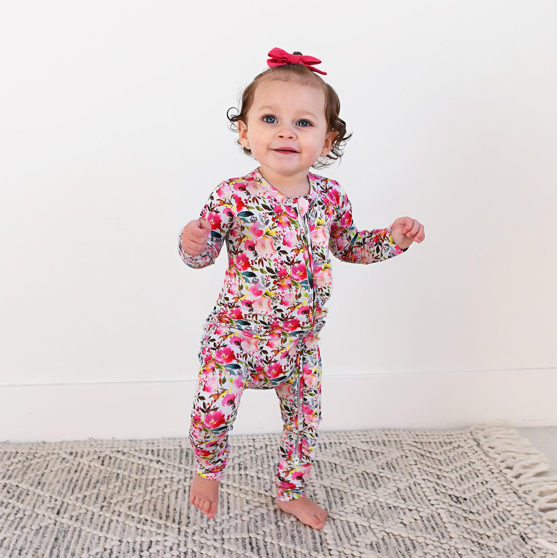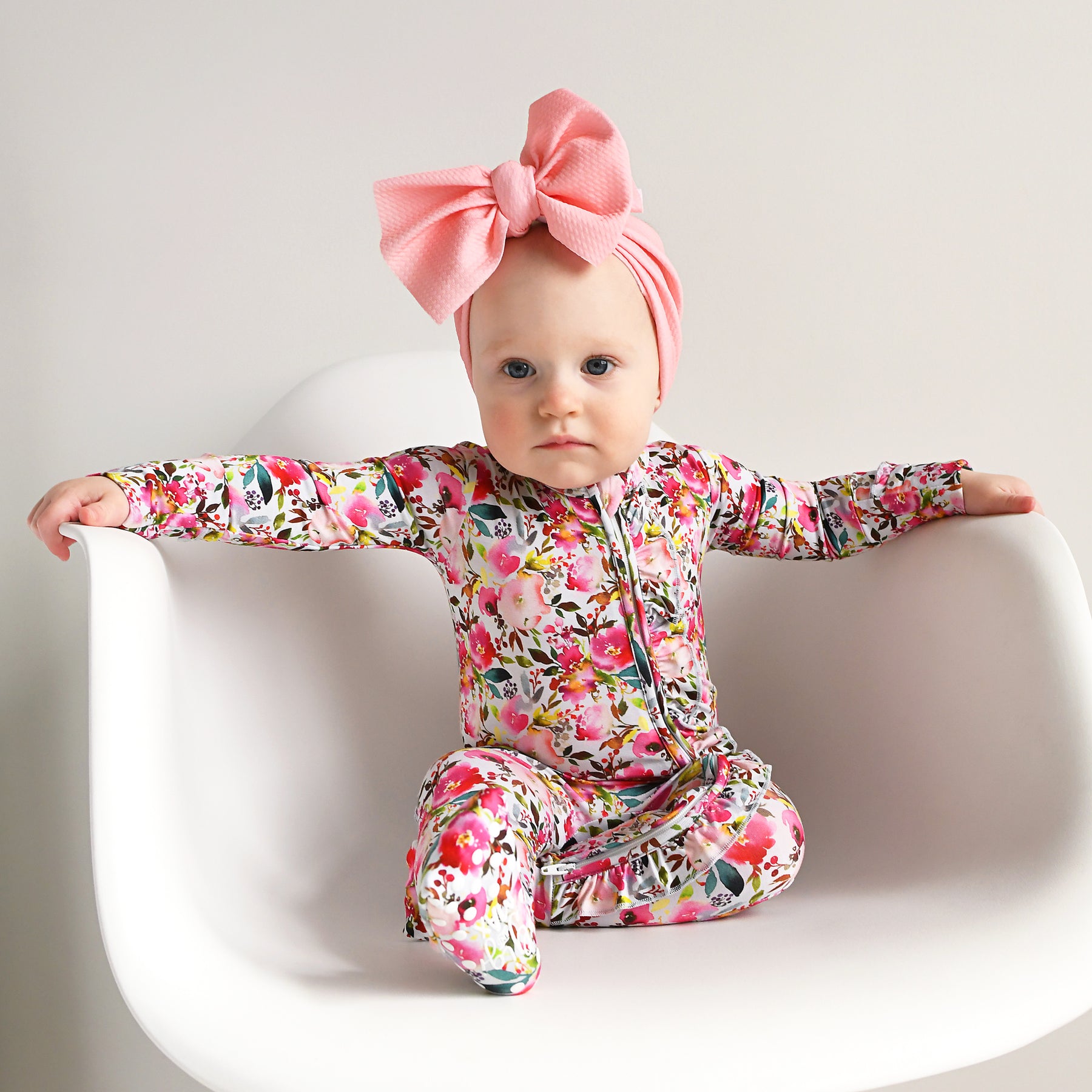 This zip one piece is super soft and comfortable. Featuring a zipper that runs from the top of the outfit to the ankle. Our favorite part about this outfit is that the zipper is 2 way! Making for super easy diaper changes without having to remove the whole outfit.