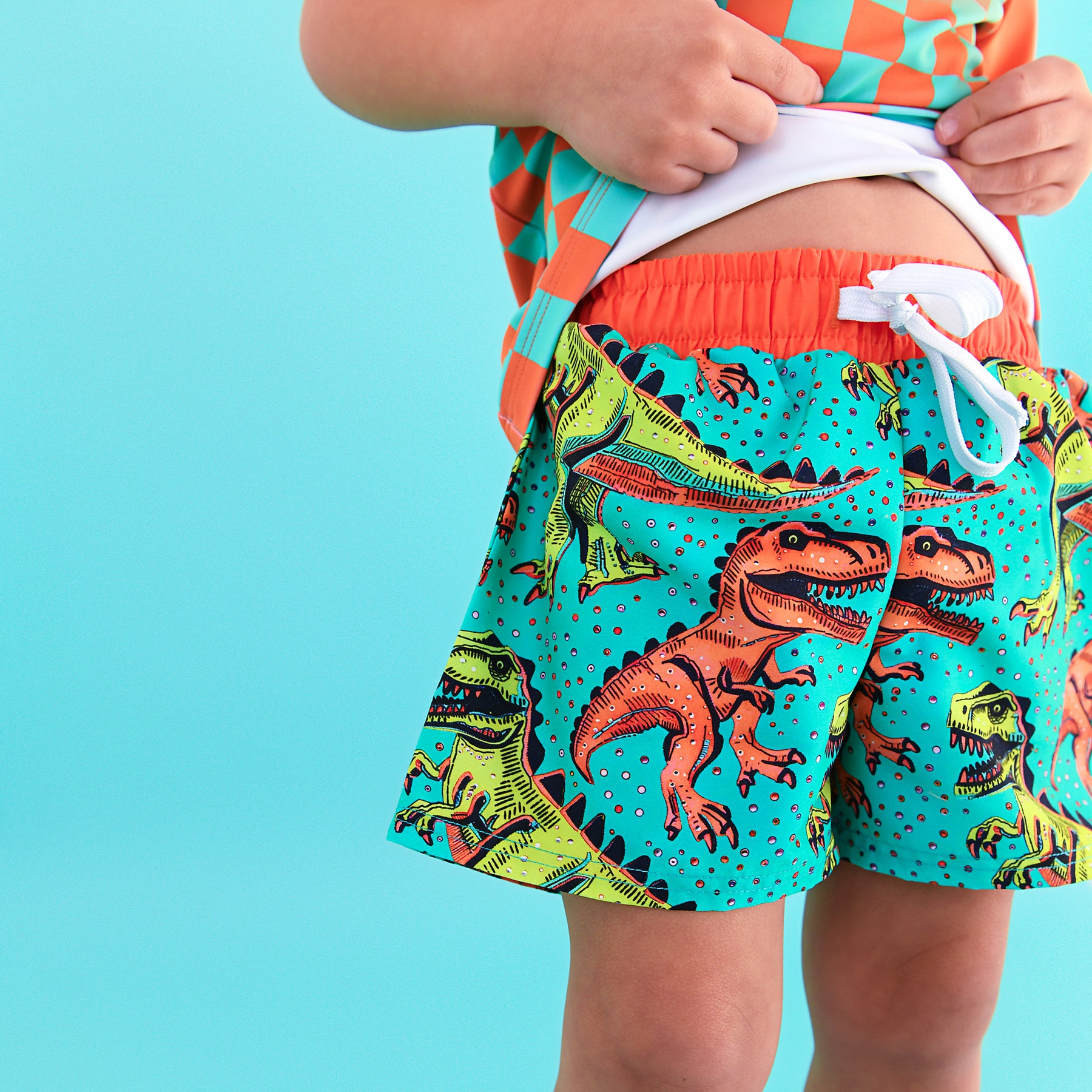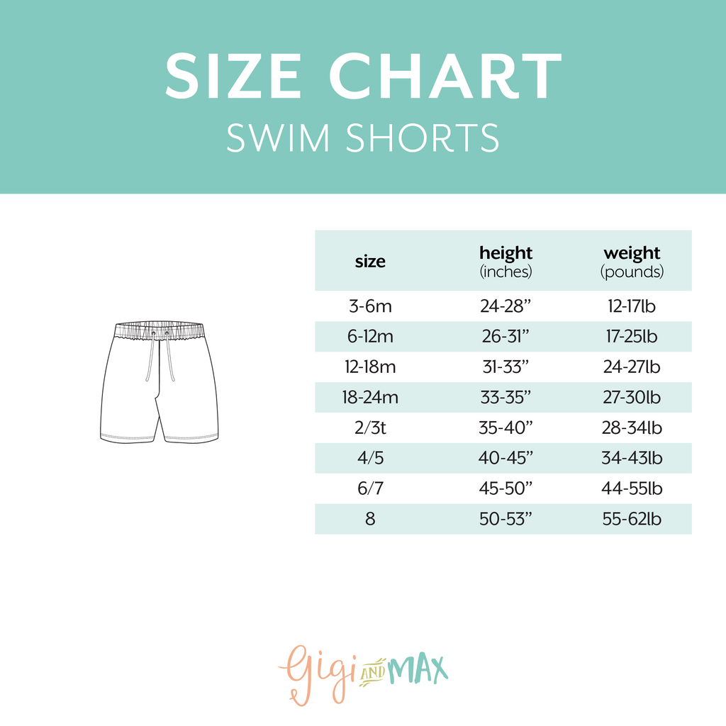 These swim shorts are a must have for your little cutie this summer. Features built in neoprene briefs, functional drawstring with elastic waist.