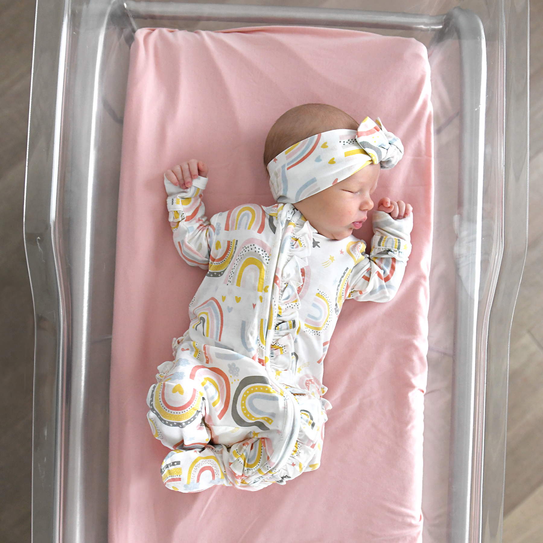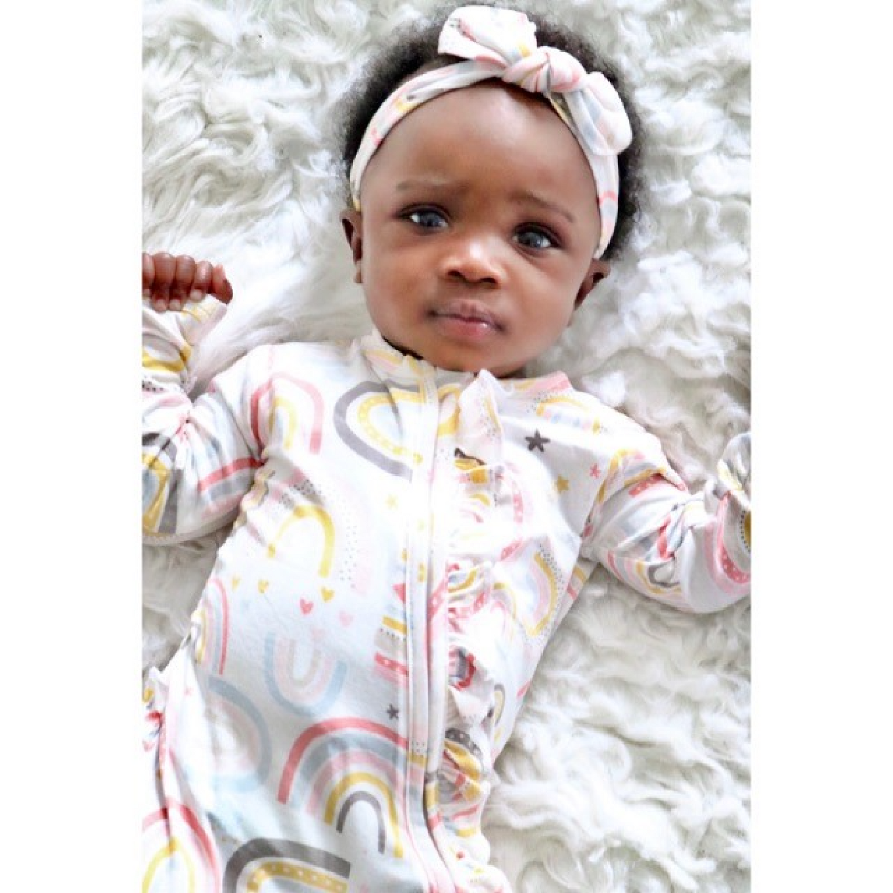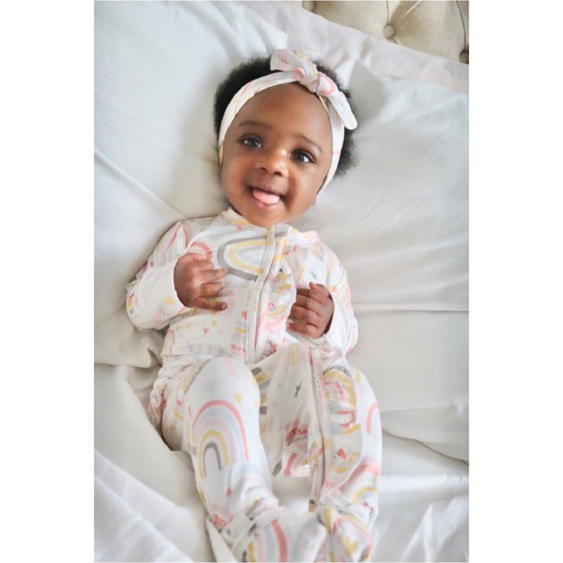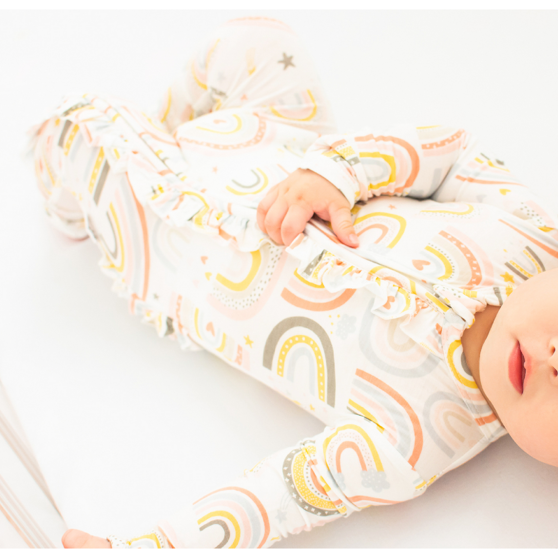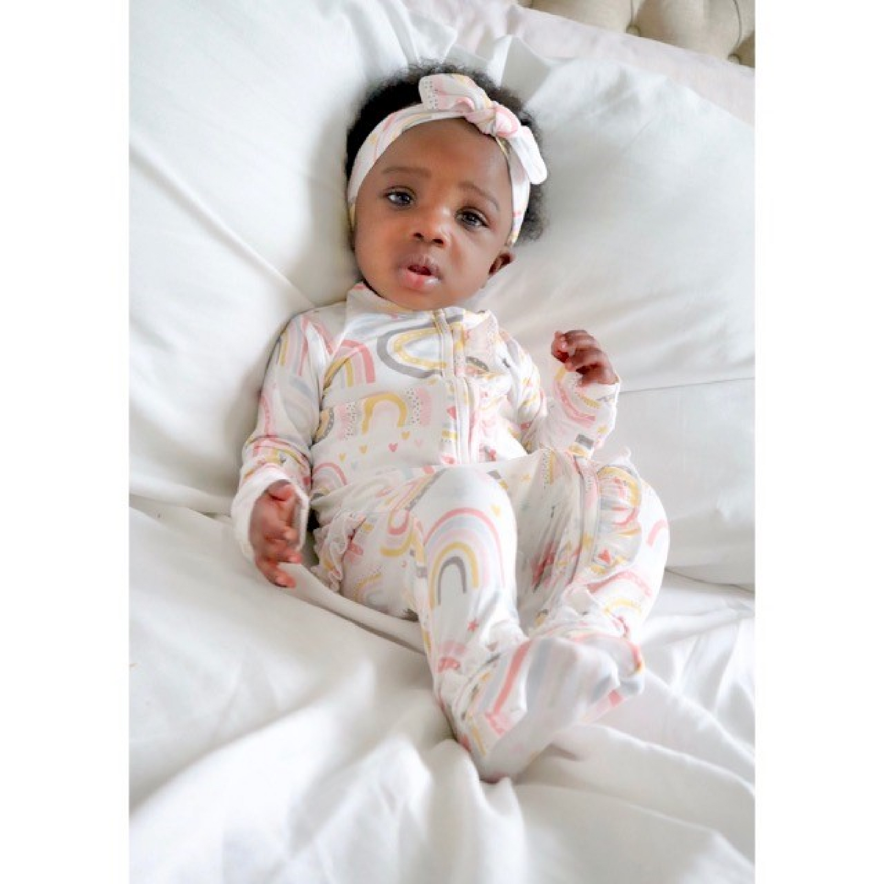 Robyn E. Even cuter in person and on my baby. Love the ruffles with the pink and white is the perfect girly touch. Super soft and stretchy! Comfy + adorable.