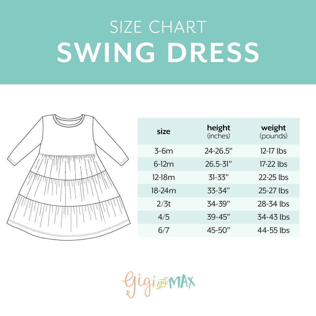 This adorable swing dress is a must have for your cutie, it's perfect for twirling, super soft and so comfortable! Snaps at the shoulder make taking on and off very easy! Bodice is double lined. The tiered skirt is absolutely beautiful.