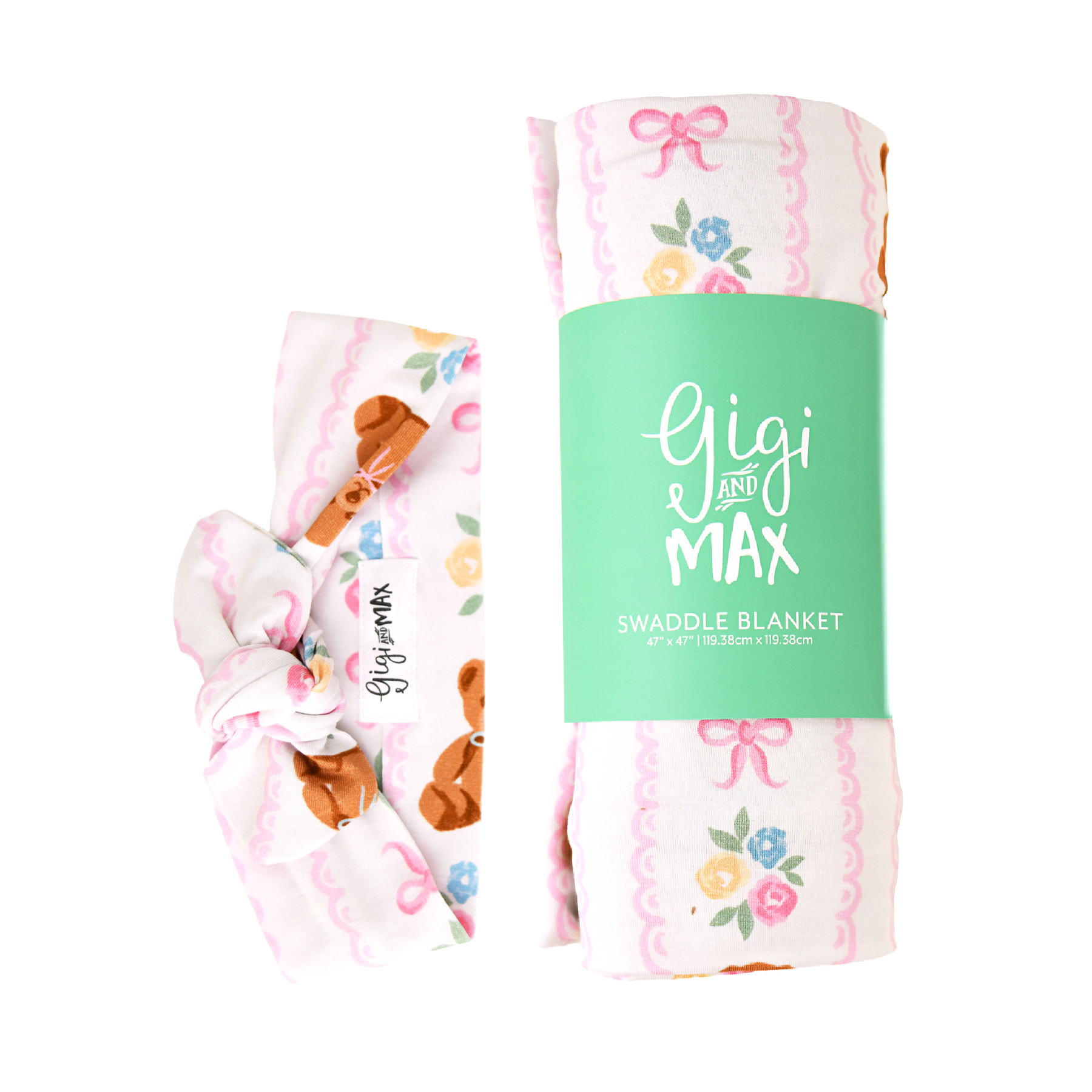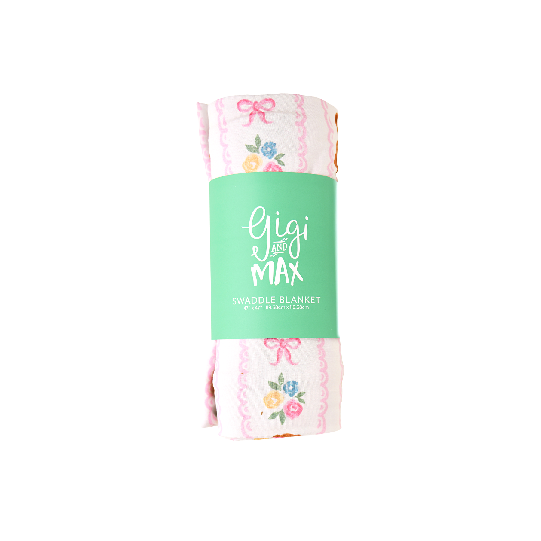 Swaddle blanket is 47" X 47" - perfect for light weight swaddling, stroller blanket, and nursing cover! Pattern of the blanket is only on one side, beautifully finished around the edges for the perfect professional look!