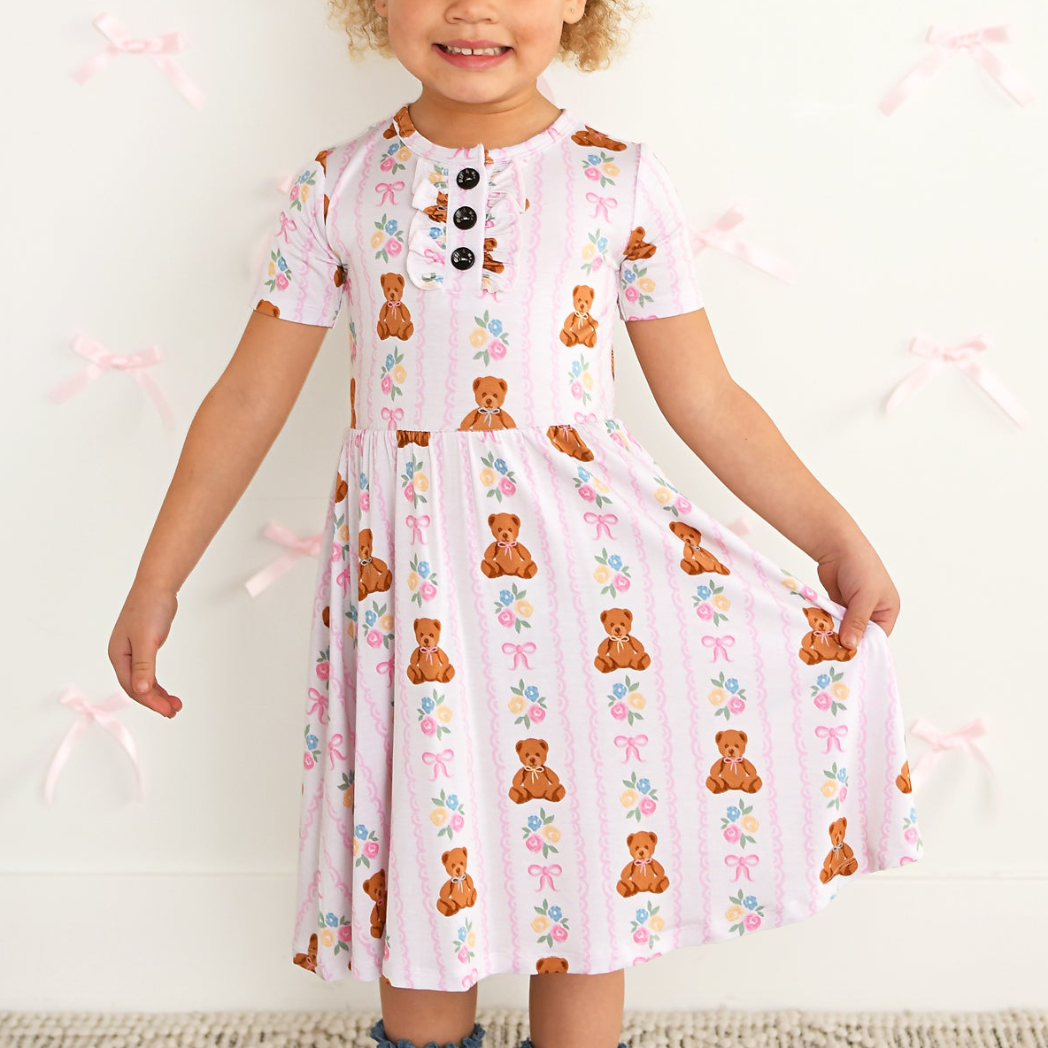Lesley Fits my daughter with room to grow for next season. The print is super cute!