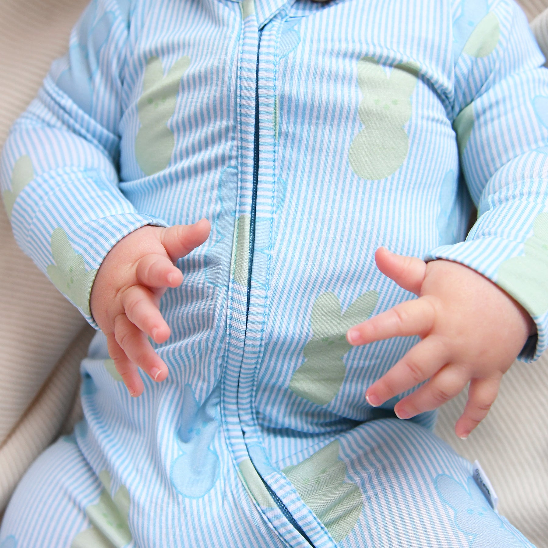 This zip one piece is super soft and comfortable. Featuring a zipper that runs from the top of the outfit to the ankle. Our favorite part about this outfit is that the zipper is 2 way! Making for super easy diaper changes without having to remove the whole outfit.