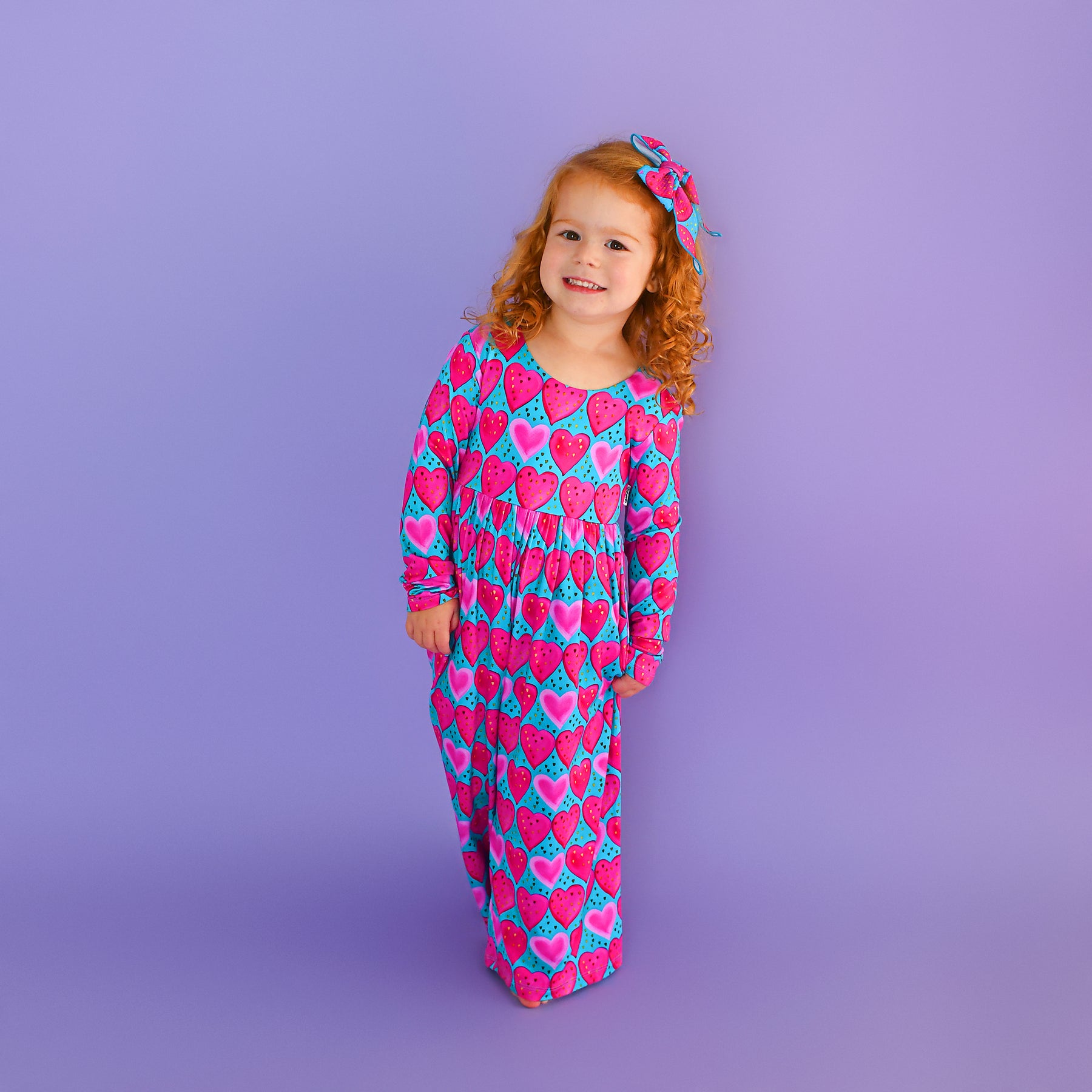 Such vibrant colors, we sized up so will get a couple years use, but tie the bottoms to stay out of her way.