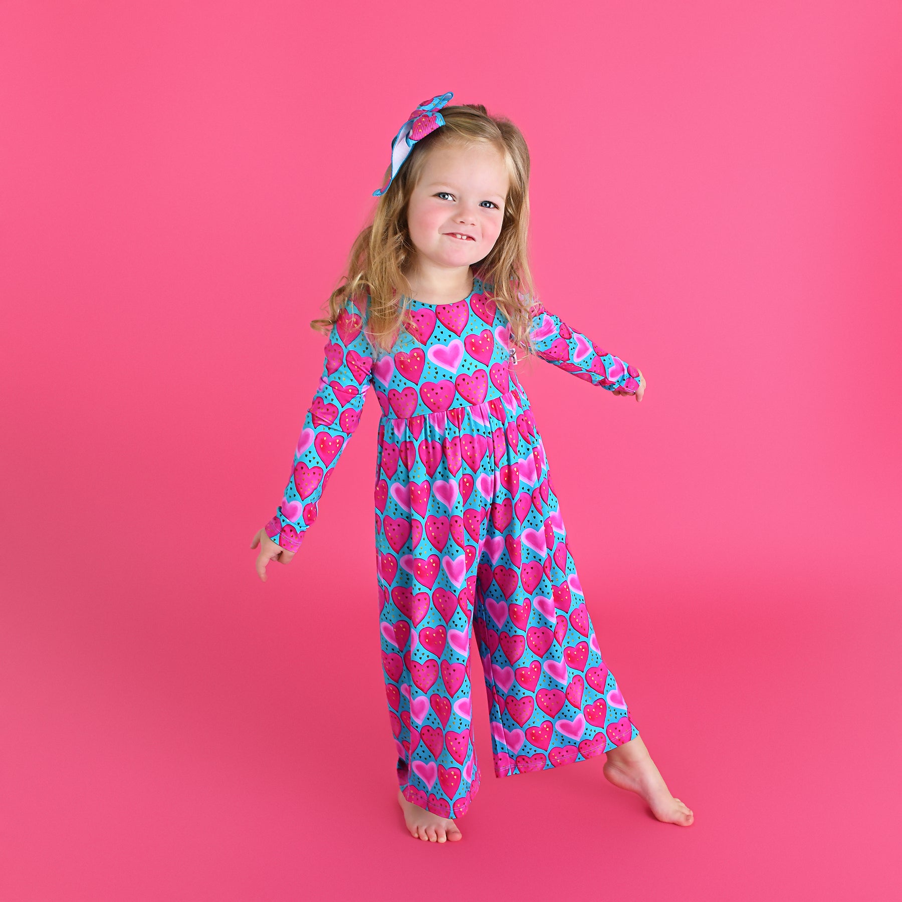 Your little one will love the easy comfort of this wide leg romper. Made from luxuriously soft and breathable bamboo viscose, it has the perfect amount of stretch for play and everyday wear. The wide leg fit gives it a relaxed, stylish look while still keeping it practical and comfy.