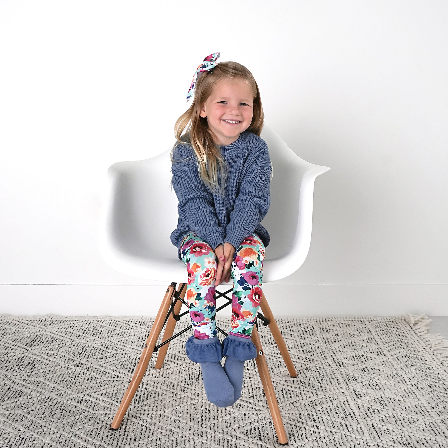 The sweetest addition to your cuties' wardrobe! These ruffle socks are absolute perfection. Super soft and stretchy, these are meant to have a midi fit - halfway up the calf.