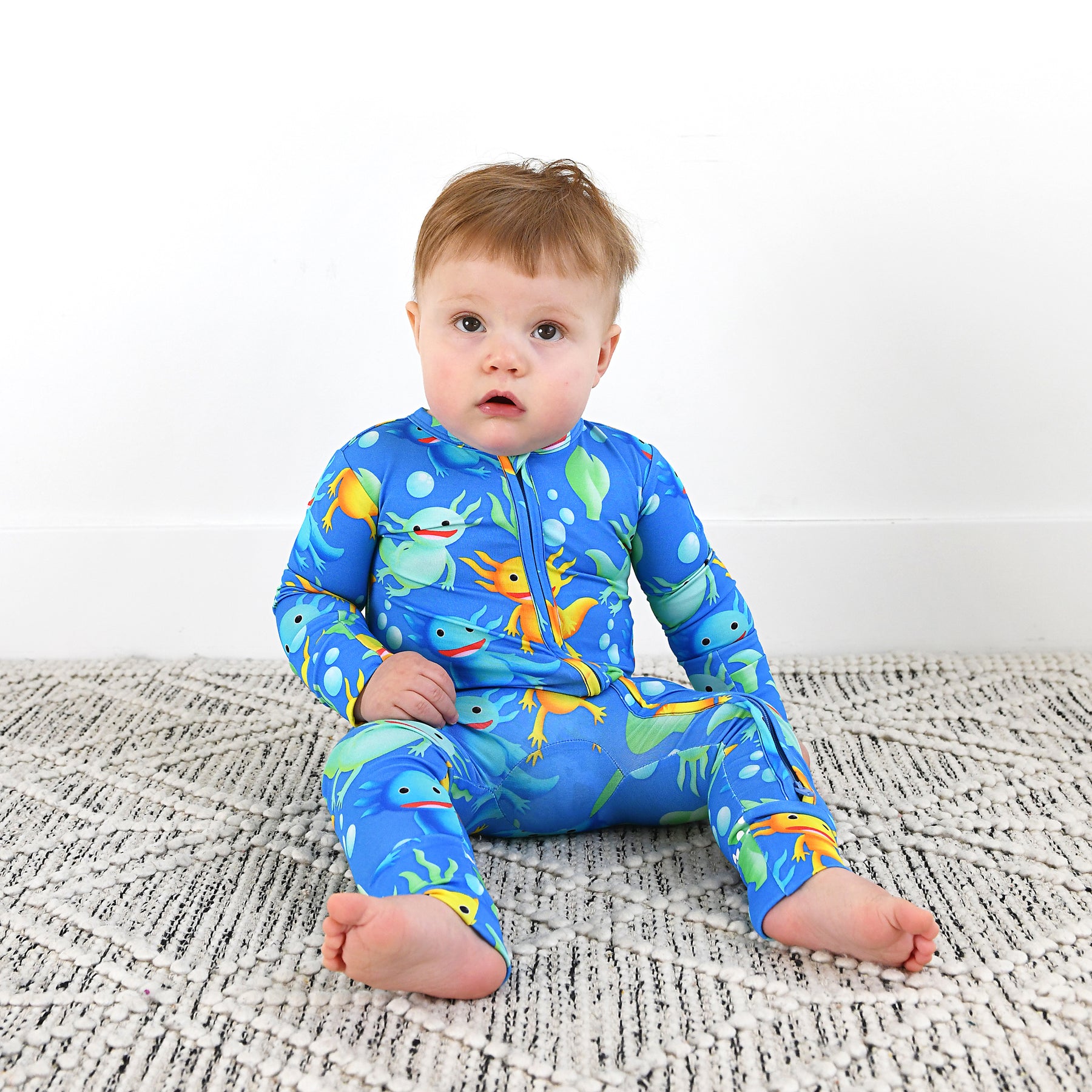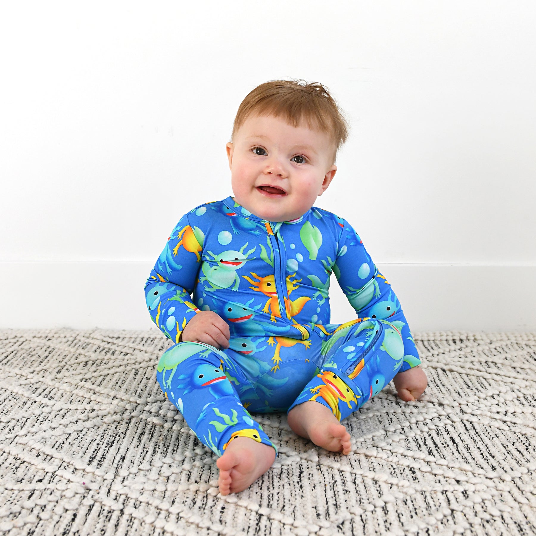 This zip one piece is super soft and comfortable. Featuring a zipper that runs from the top of the outfit to the ankle. Our favorite part about this outfit is that the zipper is 2 way! Making for super easy diaper changes without having to remove the whole outfit.