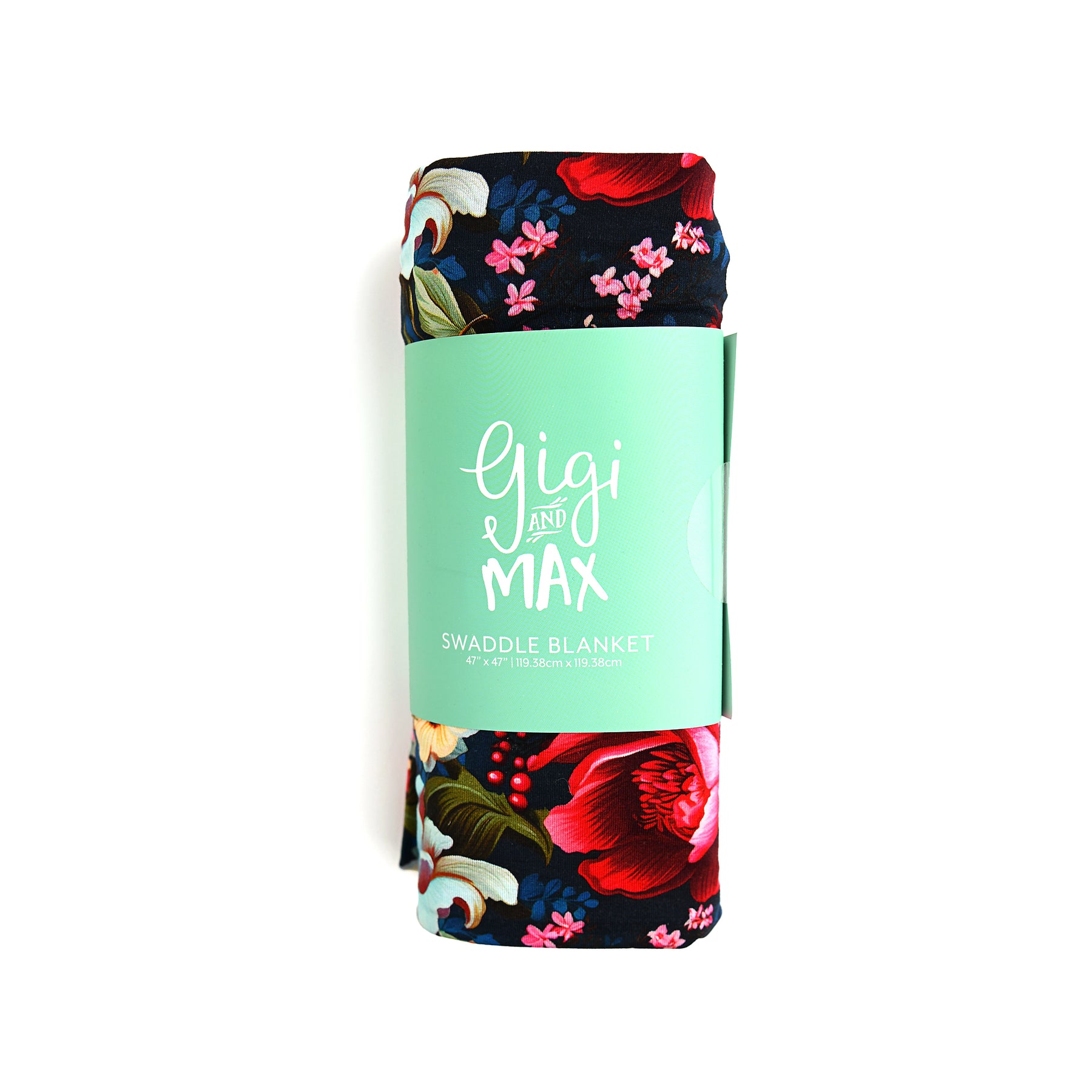 Swaddle blanket is 47" X 47" - perfect for light weight swaddling, stroller blanket, and nursing cover! Pattern of the blanket is only on one side, beautifully finished around the edges for the perfect professional look!