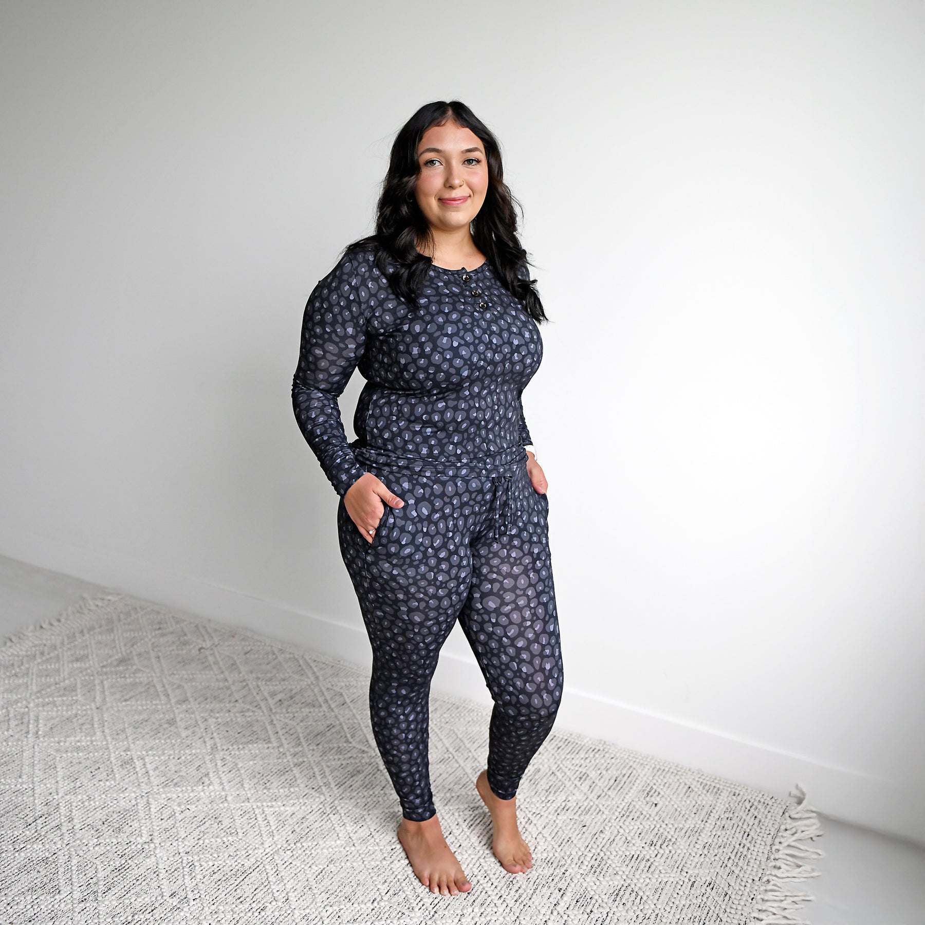 Match your sweet baby in this amazing 2 piece Mommy loungewear set. Made from our super soft bamboo viscose you know and love. Matching pants have a functional drawstring around waist and pockets (yay!)