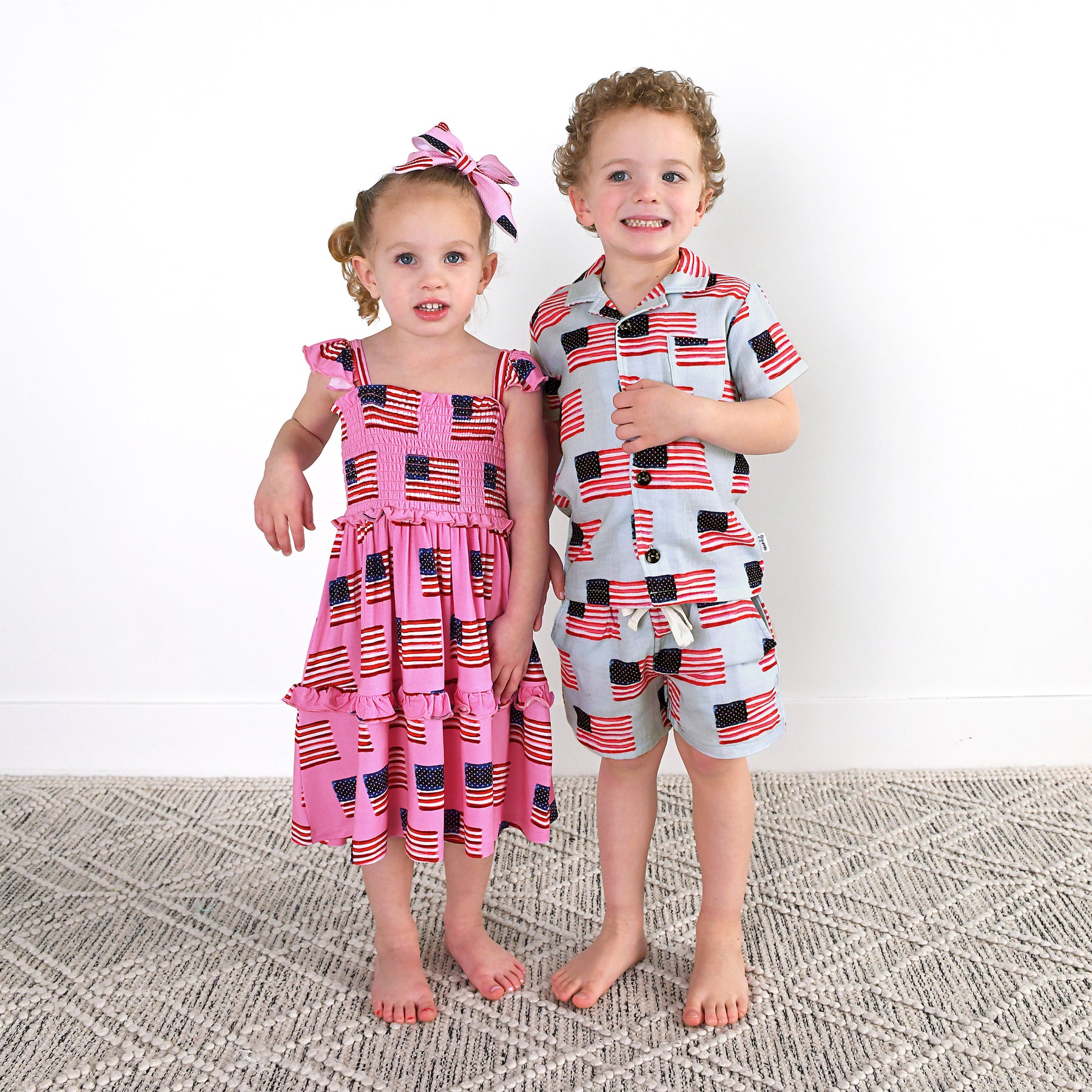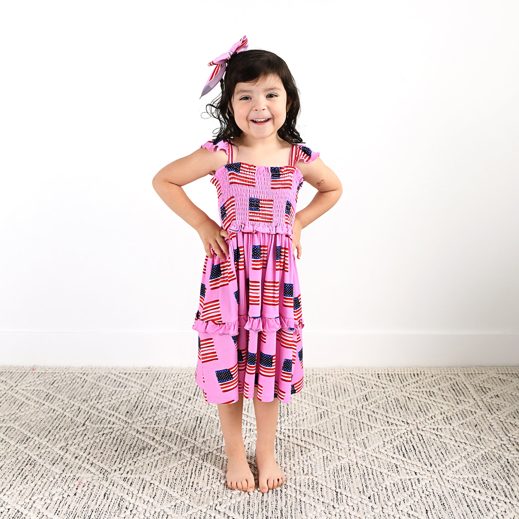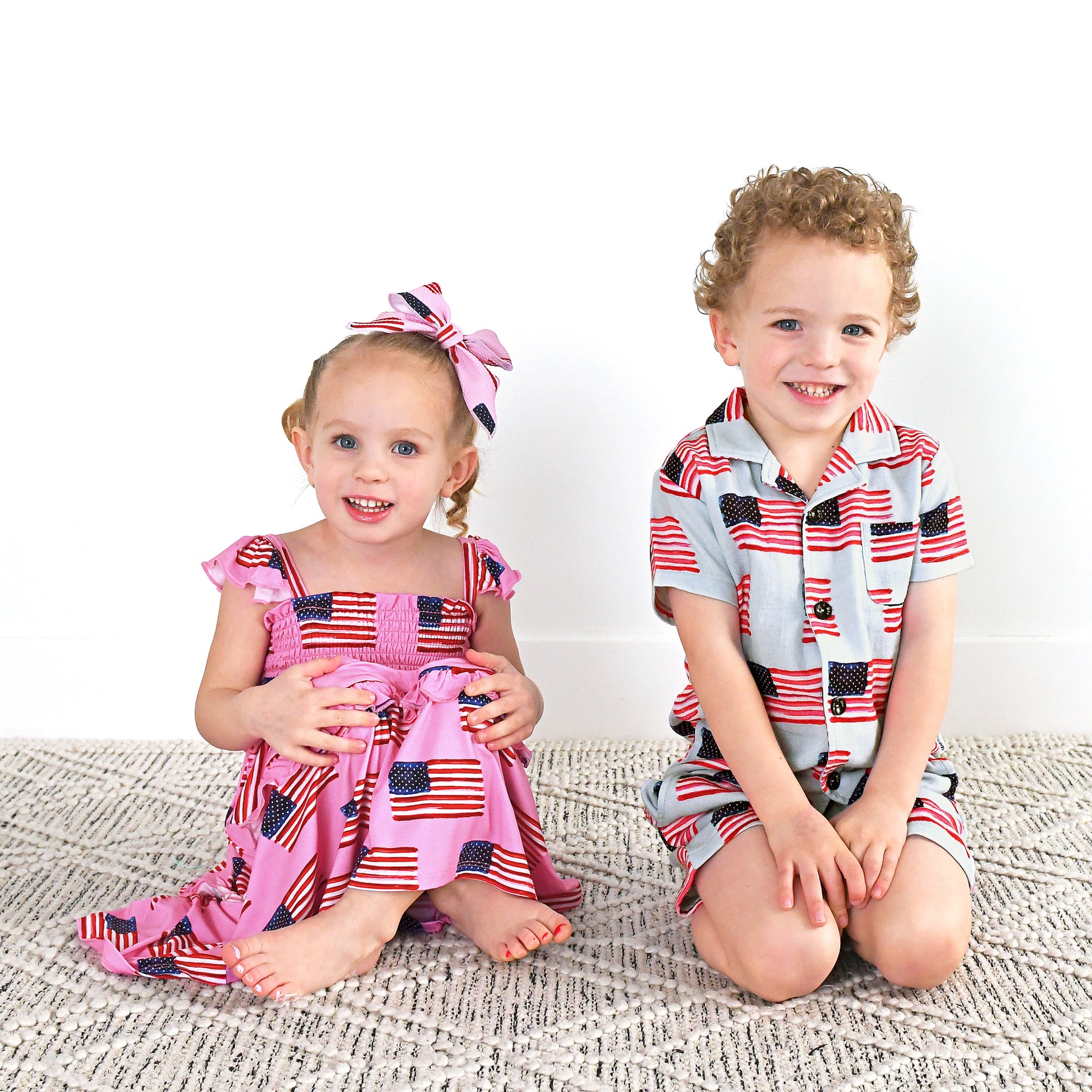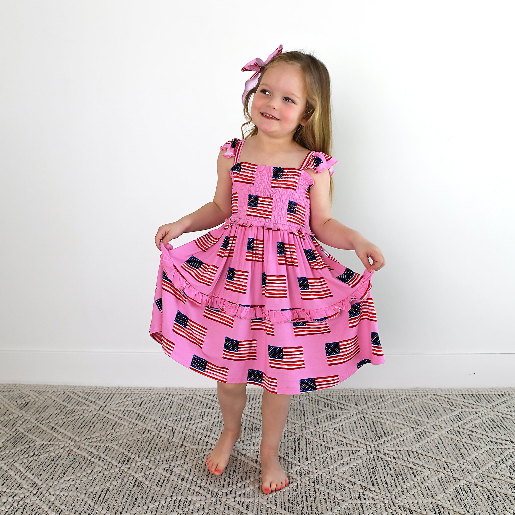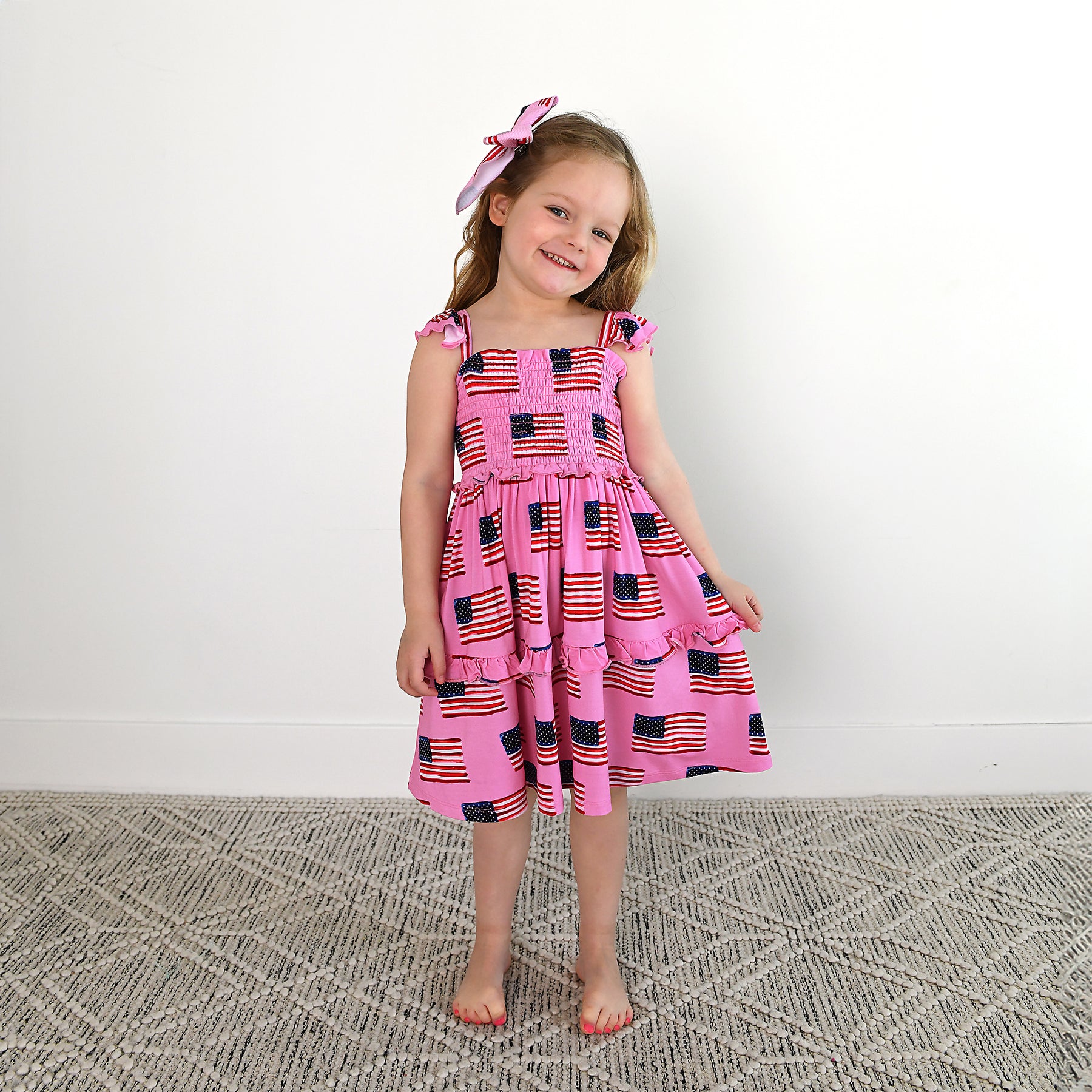 Theresa Johnson LOVE LOVE this style and print. It is perfect for little girls either play or for dressier events. The print is perfect for everyday, but especially Memorial Day and 4th of July.