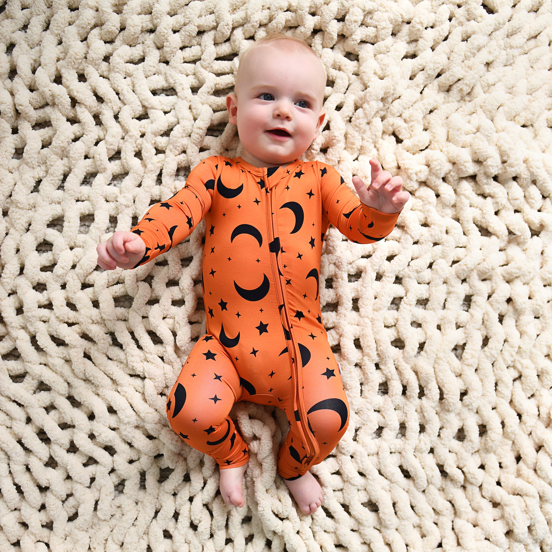 This zip one piece is super soft and comfortable. Featuring a zipper that runs from the top of the outfit to the ankle. Our favorite part about this outfit is that the zipper is 2 way! Making for super easy diaper changes without having to remove the whole outfit.
