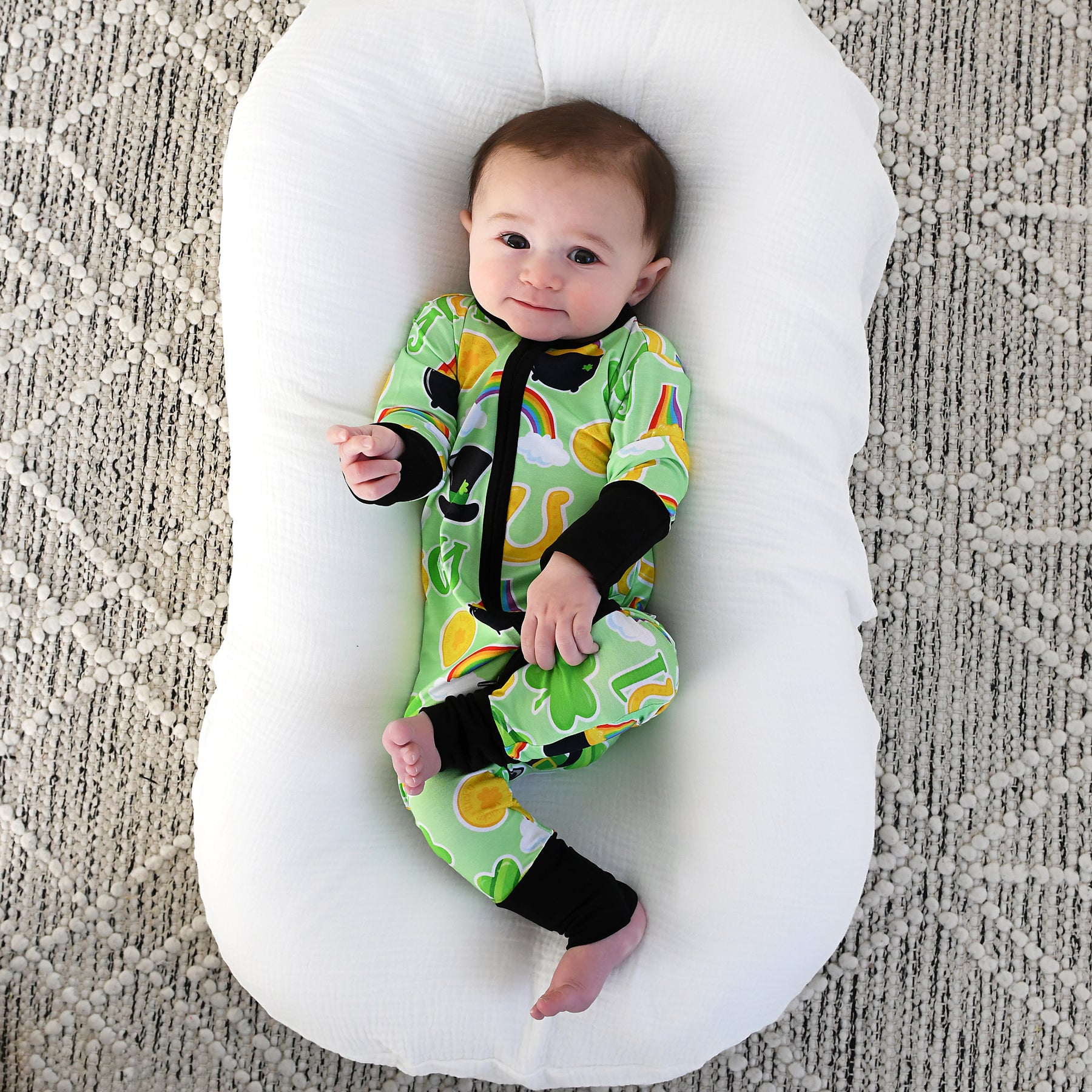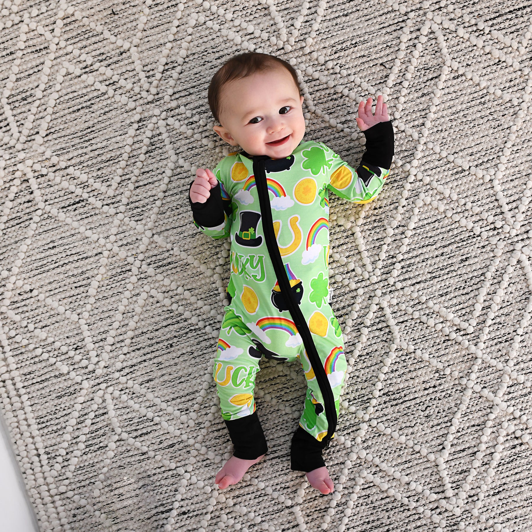This zip one piece is super soft and comfortable. Featuring a zipper that runs from the top of the outfit to the ankle. Our favorite part about this outfit is that the zipper is 2 way! Making for super easy diaper changes without having to remove the whole outfit.