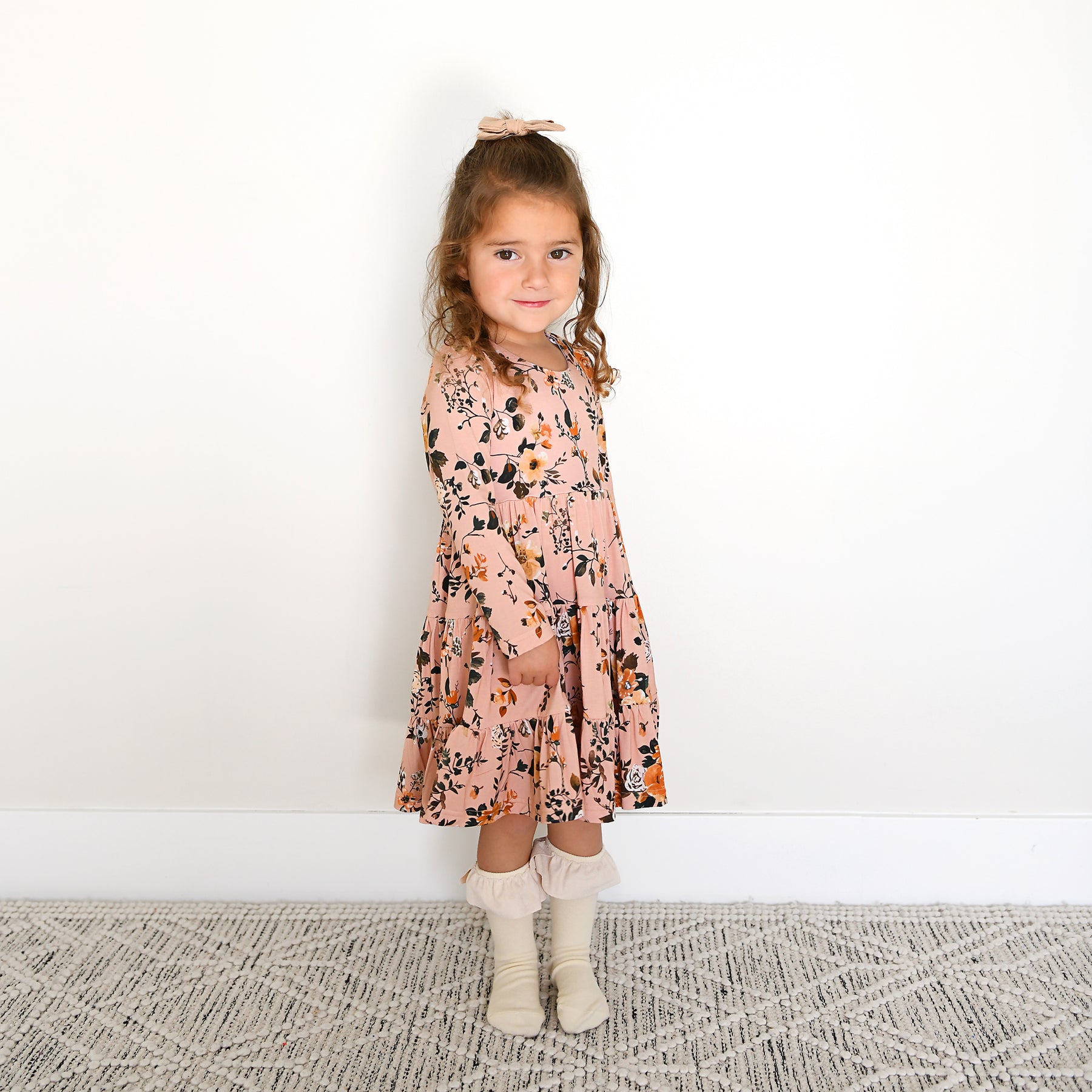 This adorable swing dress is a must have for your cutie, it's perfect for twirling, super soft and so comfortable! Snaps at the shoulder make taking on and off very easy! Bodice is double lined. The tiered skirt is absolutely beautiful.