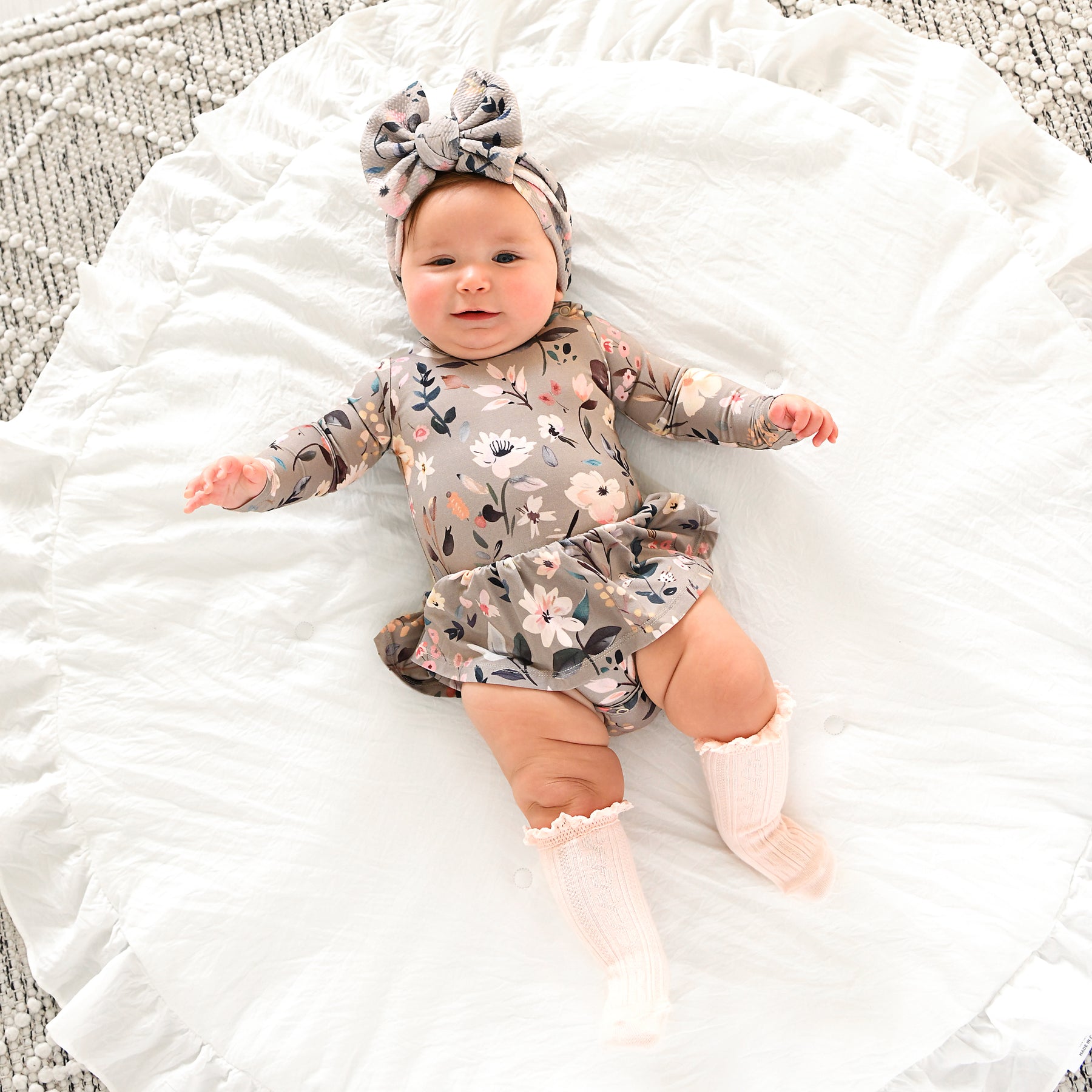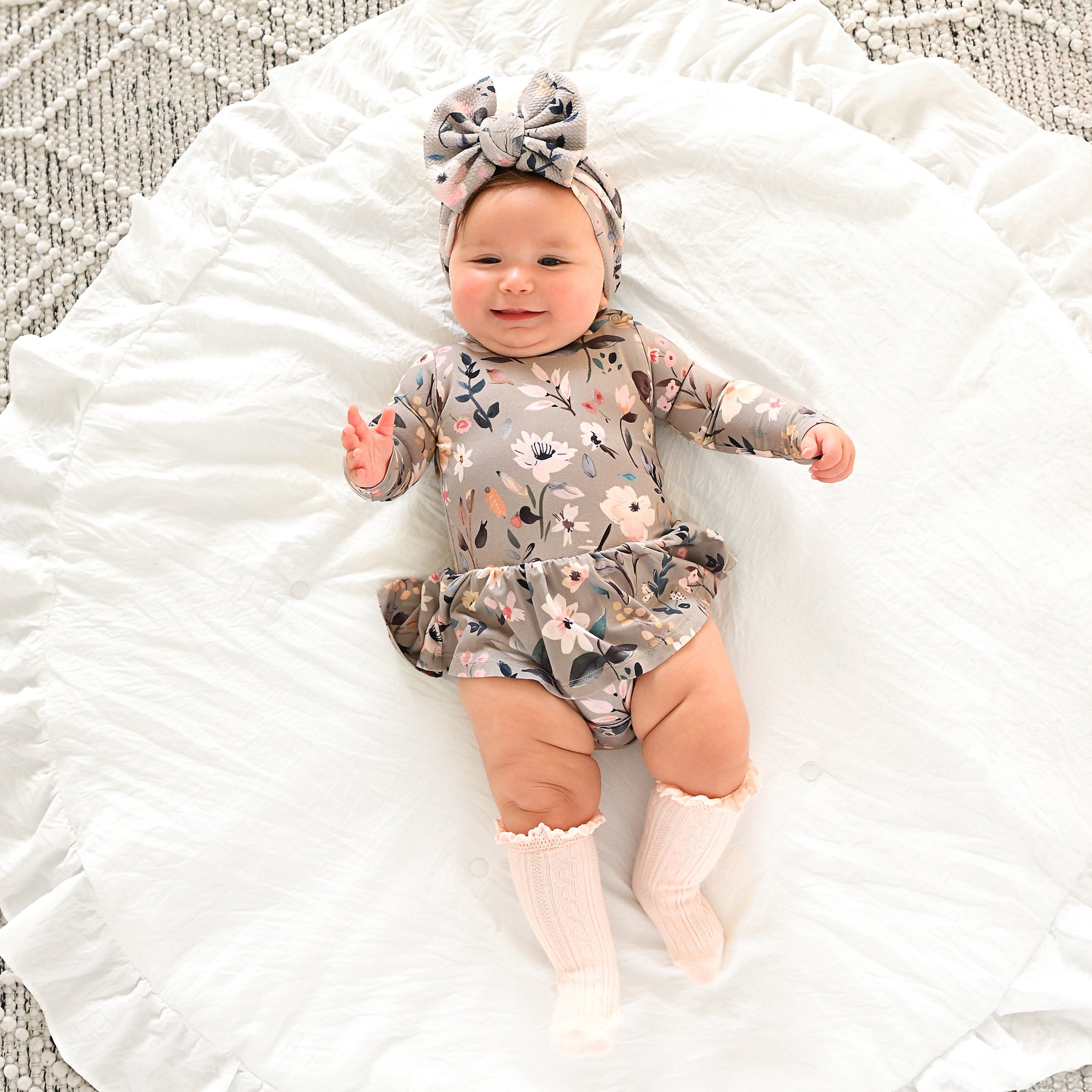 This tutu is super soft and comfortable! Featuring the sweetest little tutu skirt attached to the fitted bodysuit. 3 snaps at bottom make for easy and fast diaper changes. Snaps at the shoulder make taking on and off baby very easy!